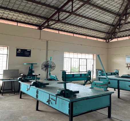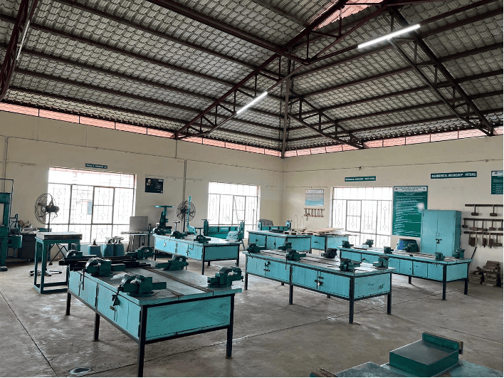 The workshop is the introductory space where students learn the fundamentals of fabrication and "hands-on" manufacturing. It typically includes specialized sections for fitting, carpentry, smithy, and welding, allowing students to understand how raw materials are shaped. You’ll find traditional machines like lathes and shapers used to create basic mechanical components. It emphasizes the importance of manual dexterity and safety protocols in a practical environment.