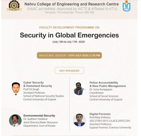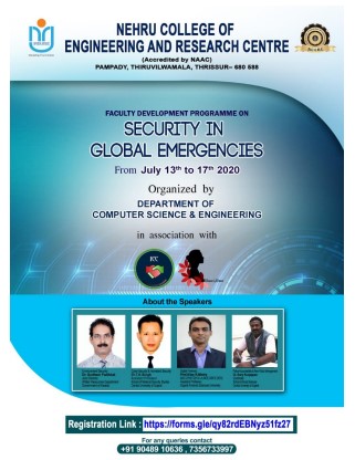 FACULTY DEVELOPMENT PROGRAM ON SECURITY IN GLOBAL EMERGENCIES from July 13, 2020 – July 17, 2020. Organised by Department of Computer Science and Engineering. |