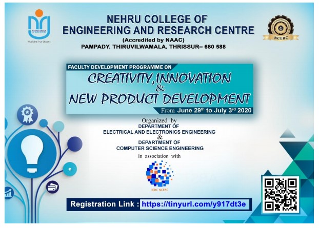 FACULTY DEVEOPMENT PROGRAM on CREATIVIY, INNOVATION and NEW PRODUCT DEVELOPMENT DATE: June 29th to July 2nd 2020 |