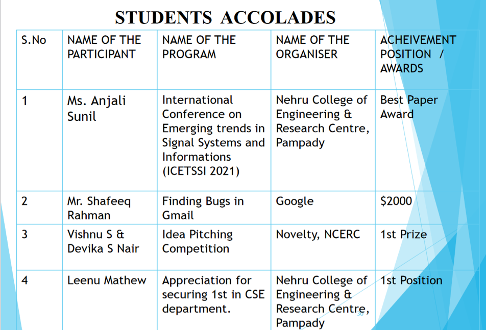 Ms. Anjali Sunil , Nehru College of Engineering and Research Centre.