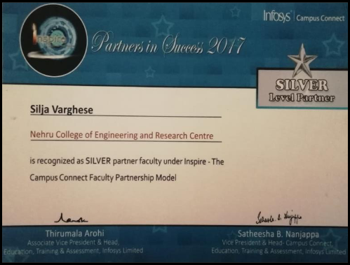 ![]() Mr. Arun K and Ms. Baby V, Asst. Professors attended FDP conducted by Infosys Campus Connect on InfyTQ based at Vidya College of Engineering ![]() Silver Partner Recognition by Infosys Campuz Connect. |