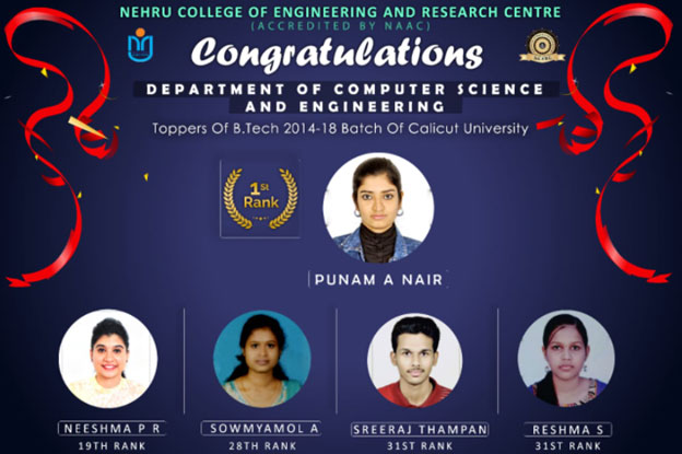 University 10th rank holder in computer science and engg 2016-20 batch CGPA – 9.5 Sneha T