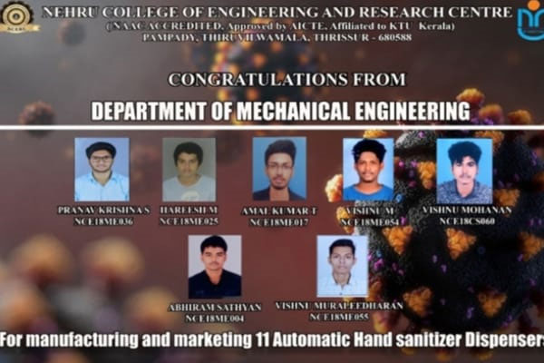 • Mr.Prasanth K.R and Mr.Sarath Krishna E, First year mechanical engineering students of NCERC, attended the idea presentation camp “SAMRAMBHAK MITHRA”, conducted by Mar Ivanios college, Thiruvananthapuram on 16th March 2019.