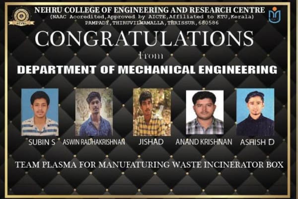 • Mr.Govind,Mr.JithinT.J, Mr.MelvinJohnson, and Mr.Sreerag of final year mechatronics,got incubation in Central Institute of Fisheries Technology(ICAR-CIFT) Kochi.